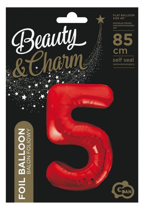 Number Red 5 foil balloon 85 cm