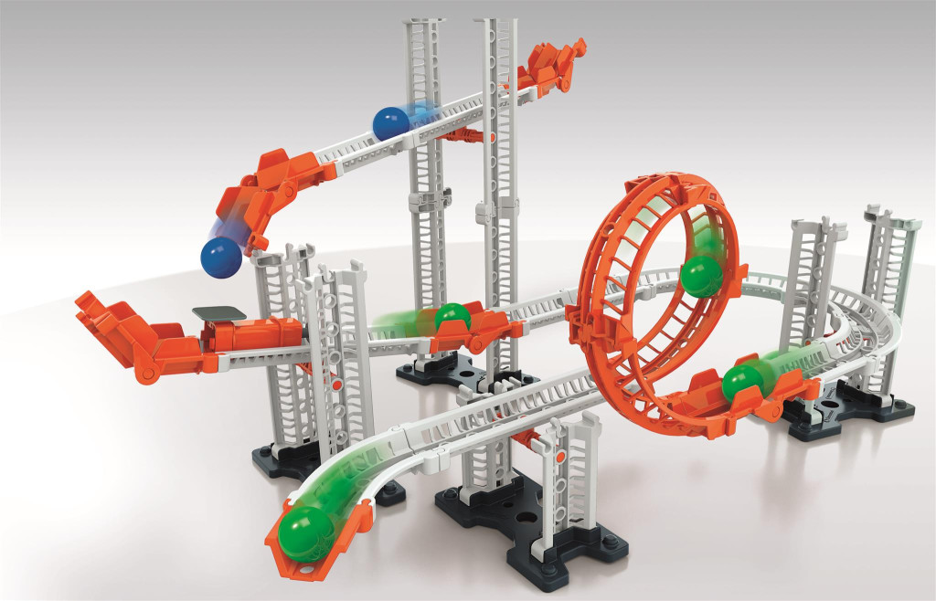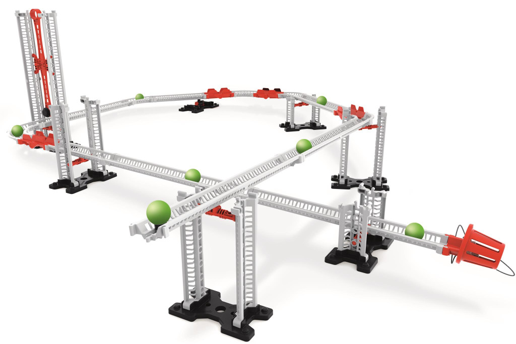 - build your track system with the challenge of creating a course where moving balls set various elements in motion